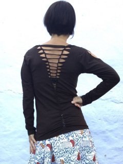 草木染めした色々な素材の生地の パッチワークまるい巾着。