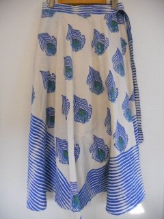 インドの木版プリント サンガネールの巻きロングフレアスカート。