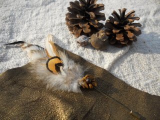 ベースの羽根は伊藤若冲に触発されて鶏の羽根(フィッシング用)を使っています。