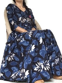 NEW! ブロックプリント ボタニカル ワンピース マキシ丈 ⭐︎ インド更紗 木版プリント [D]