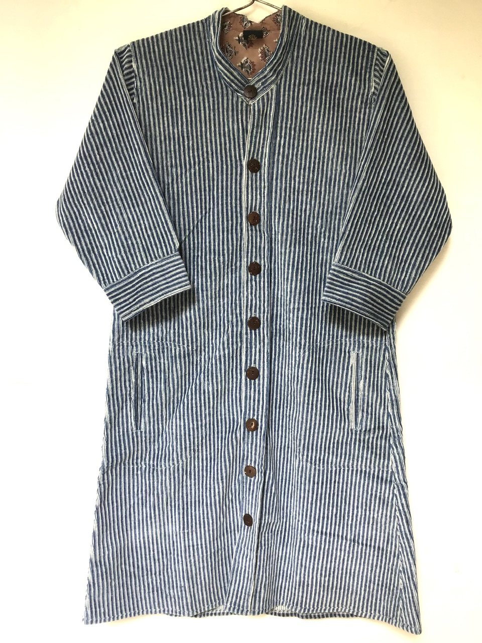 NEW 藍染コーデュロイ ワンピース★クルタワンピ 7部袖 インディゴ染