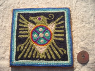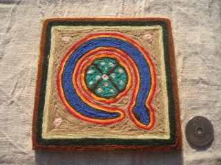 メキシコ、ウイチョール族の毛糸を貼って描かれた絵です。
